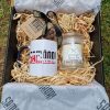All custom tissue paper lines, filled with wood wool, boxed and bowed ready to gift him/her.