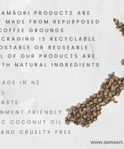 We are super excited to say our Coffee Body Care Pack is made 100% from re-purposed Samāori coffee grounds with natural key ingredients coconut oil and cocoa butter.